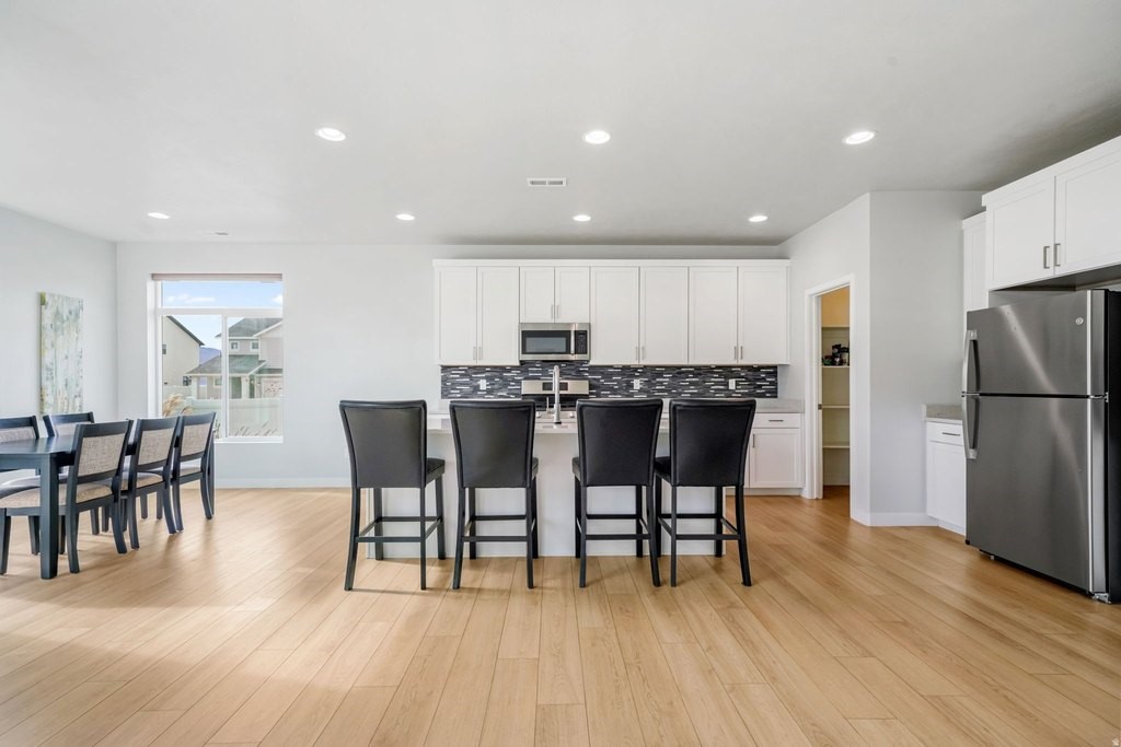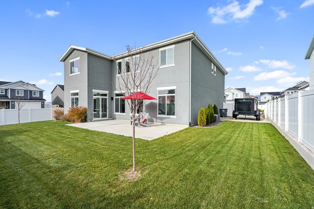 Welcome to your dream home in Stone Creek Subdivision in American Fork! This stunning residence offers an expansive layout with top-notch finishes throughout. Entertain in style with the open floor plan flooded with natural light, highlighting the comfortable family room, and a versatile loft that could be used for work or study. GOURMET KITCHEN boasting upgraded white cabinets, quartz countertops, natural gas range/oven, and a large island with seating, large walk-in pantry, and a semi-formal dining area. RETREAT TO THE SPACIOUS PRIMARY SUITE, featuring a grand ensuite bathroom with a separate garden tub and shower, double vanities, quartz countertop, and a huge walk-in closet. GARAGE WITH EXTRA STORAGE POTENTIAL - The garage comfortably fits two vehicles, with one side measuring 20 feet deep and the second bay extending 30 feet, offering extra room for a workshop, storage, or recreational vehicle. ADDITIONAL HIGHLIGHTS: epoxy garage floor for a durable and easy-to-clean surface, two furnaces provide efficient, zoned heating for ultimate comfort and energy savings, high speed fiber internet available, RV parking for your camper, boat, or trailer. SMART HOME FEATURES include smart sprinkler control, smart garage door opener with camera, 18 windows are equipped with smart window shades that can be remotely controlled via smartphone and programmed on a schedule for convenience and energy savings. RELAX IN THE BACKYARD Professionally landscaped, fully fenced, and ready for year-round enjoyment with a 13' x 24' patio perfect for entertaining or unwinding in peace. Better than building new in so many ways! Approximately 5 minutes to I-15, American Fork FrontRunner Station, and the American Fork Beach & Boat Harbor on Utah Lake that has a boat launch, docks, and a beach. Quick access to the Silicon Slopes area. ENJOY THE NEARBY AMENITIES, such as the Traverse Mountain Outlets, shopping centers, numerous dining options, movie theaters, museums, golf courses, and so much more! Only 15 minutes to the new Primary Children's Hospital. This stunning home is approximately a 35-minute drive to downtown Salt Lake City and SLC International airport. Square footage figures are provided as a courtesy estimate only and were obtained from county records. Buyer is advised to obtain an independent measurement.